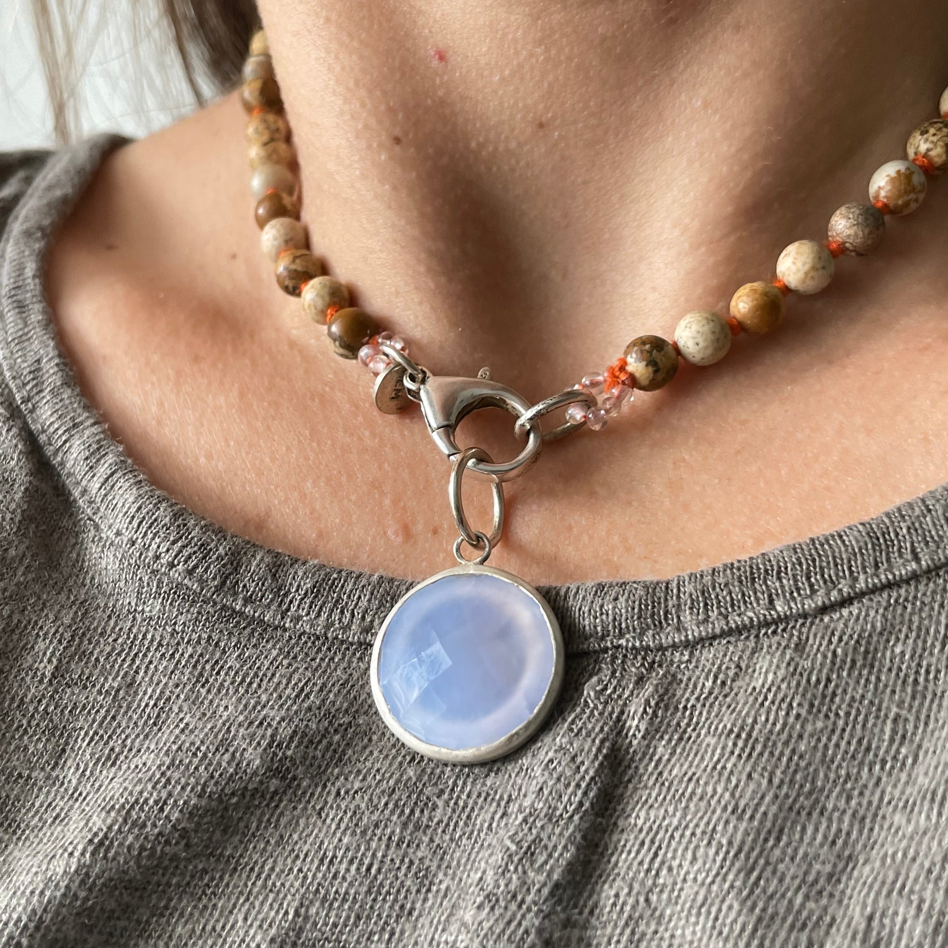 Picture Jasper is a wonderfully grounding stone with a nice, soothing weight to it. Wear jasper to help you feel solid, grounded, and connected to the earth.